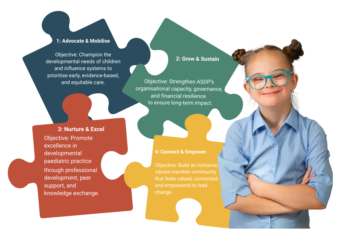 • We are a strong voice on matters relevant to improving developmental paediatrics • We take action to make a positive difference in children’s lives • we embrace complexity and step forward to lead.